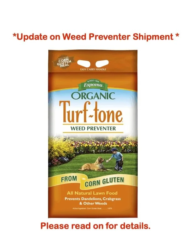 In the spirit of transparency with our customers, unfortunately, we will not be receiving our confirmed shipment of Turf-Tone Weed Preventer. We know how time-sensitive weed control applications are, and wanted to provide you with as much notice as possible.