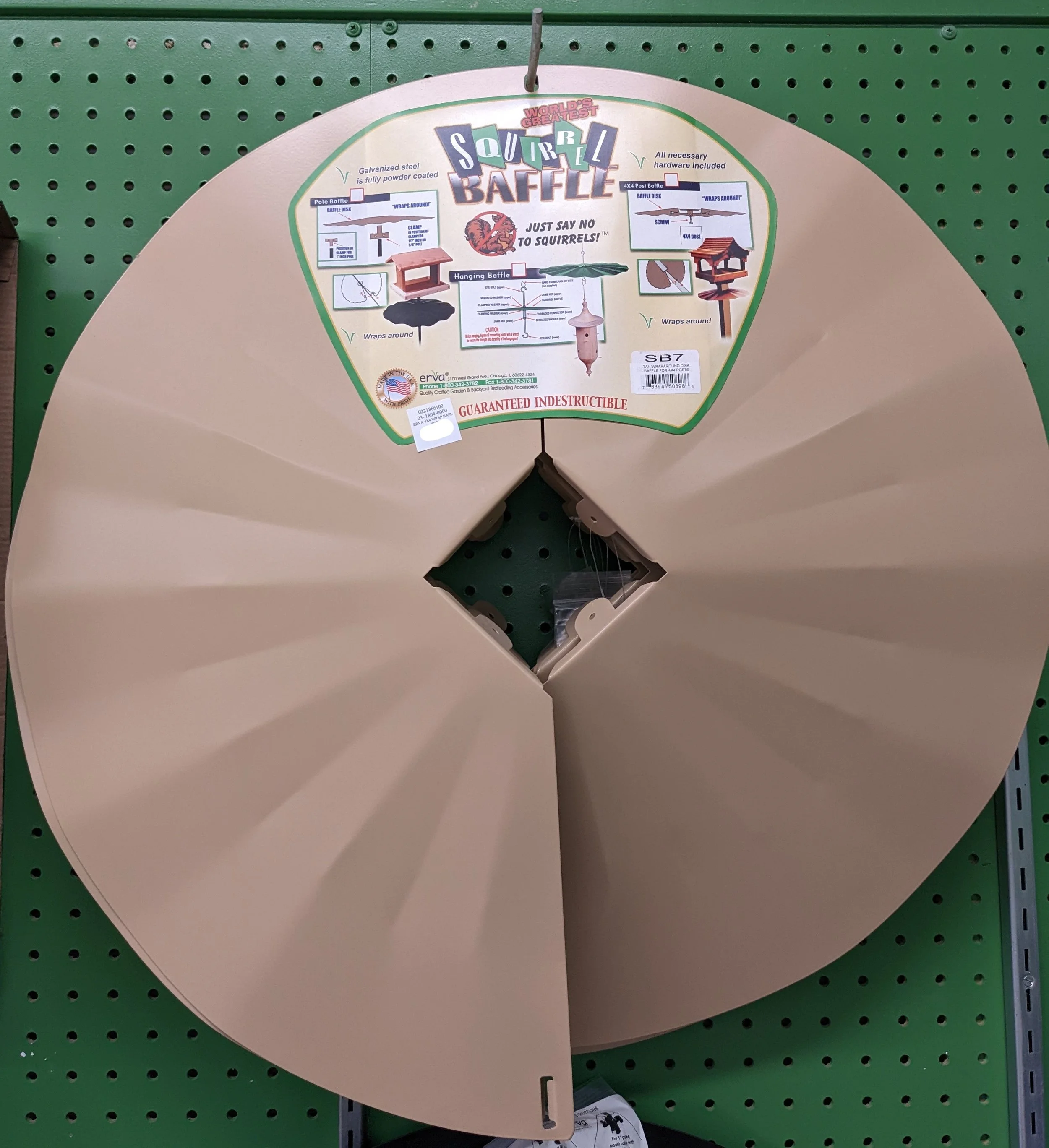 Squirrels driving you nutty?! Baffle your post! This all metal, wrap-around baffle is made to go on a 4x4 post. All hardware is included (except the post!). This baffle is designed to prevent squirrels from jumping around the baffle, onto your feeder.
